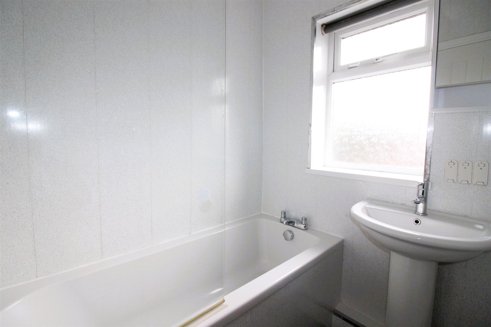 BATHROOMRear aspect UPVC double glazed window. Modern white suite comprising; panel enclosed bath with electric shower over and glass screen, pedestal sink. Fully UPVC clad walls and chrome heated towel rail.