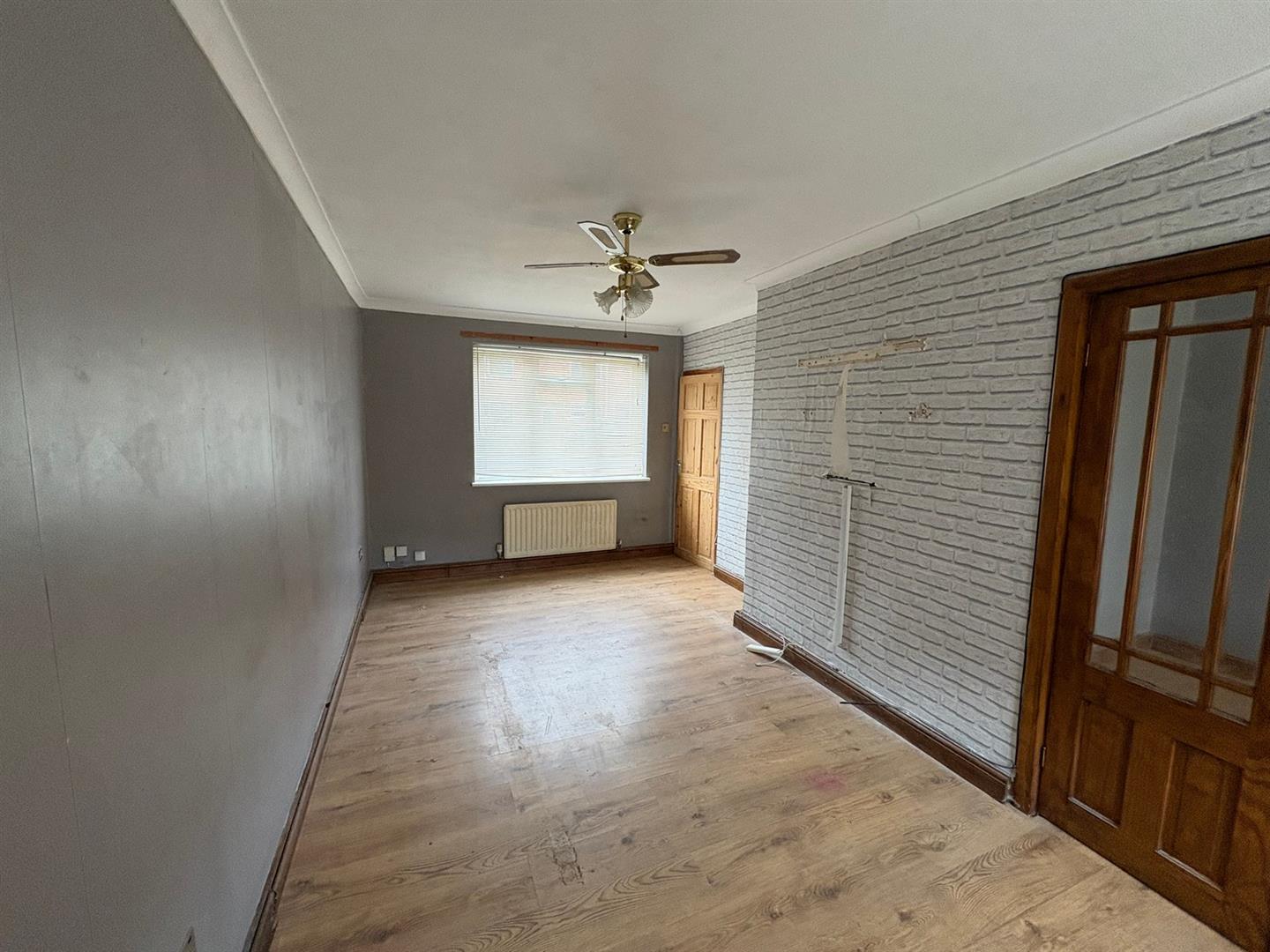 Front & rear aspect UPVC double glazed windows, laminate flooring, coving, radiator and double doors to: