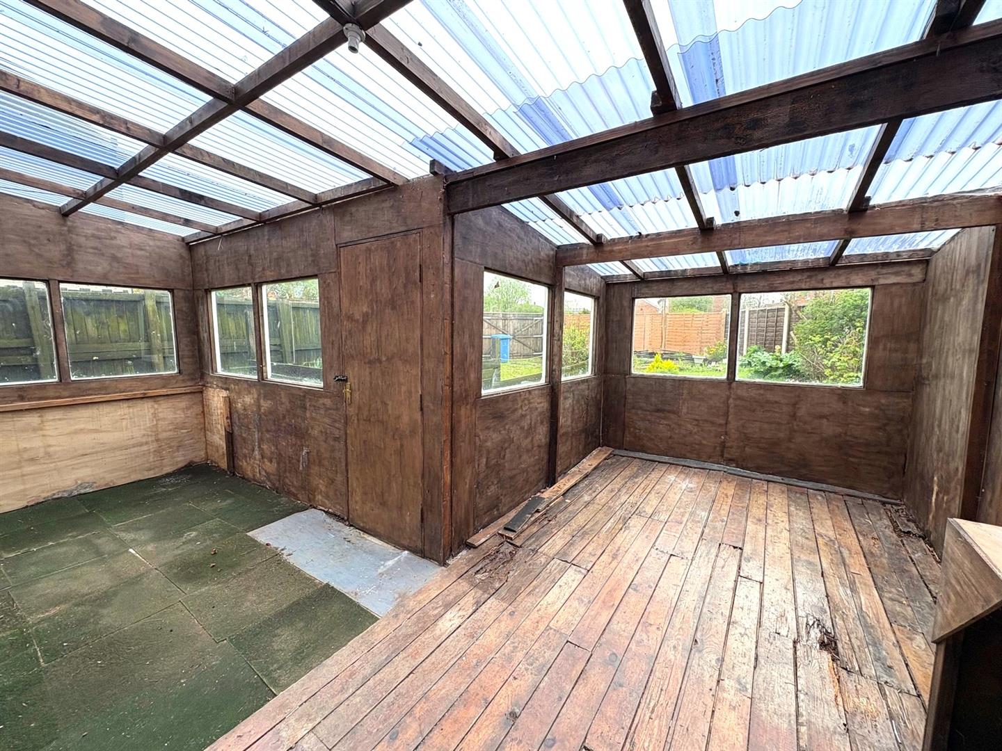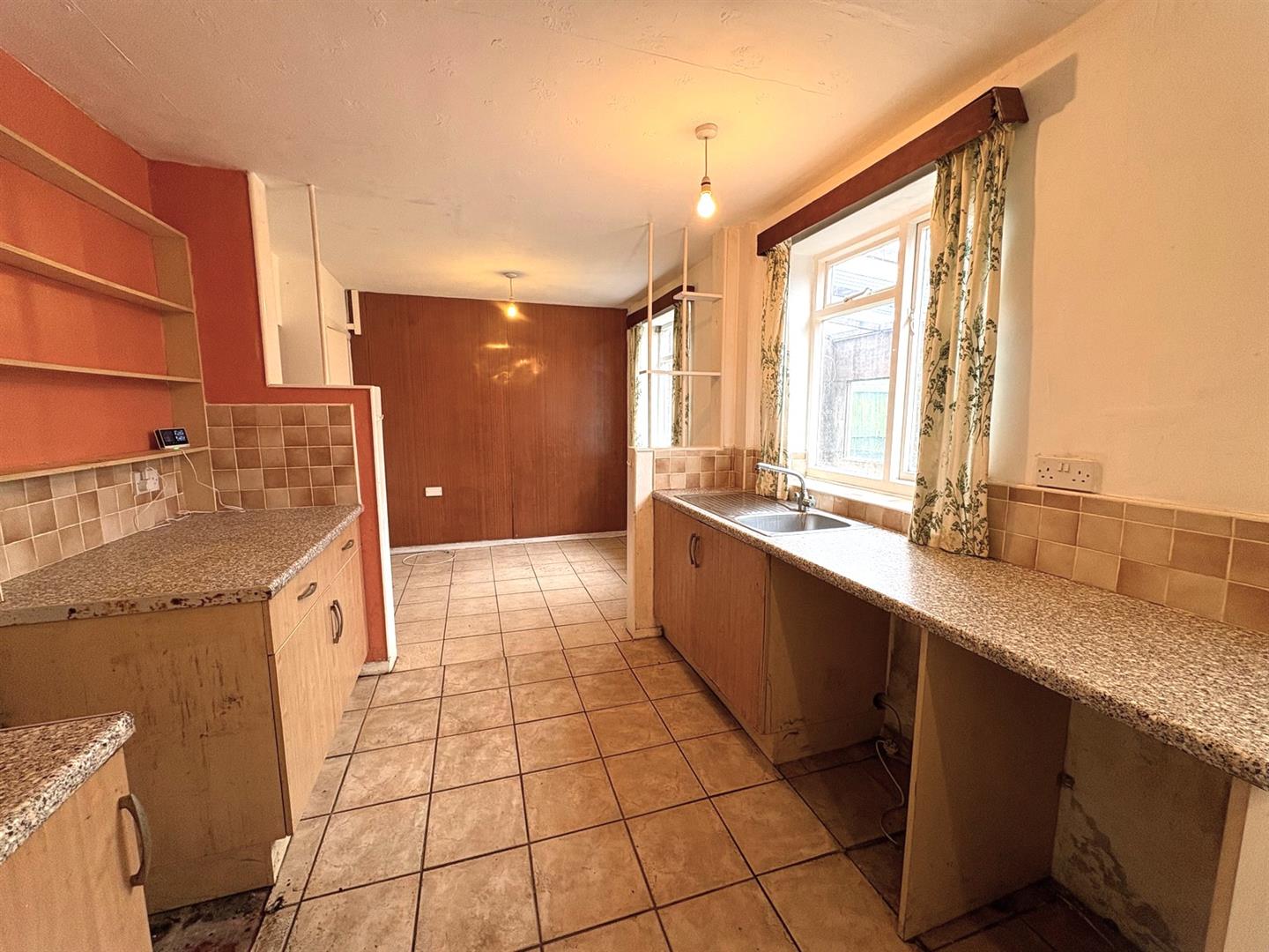 Rear aspect window, tiled floor, opening to: