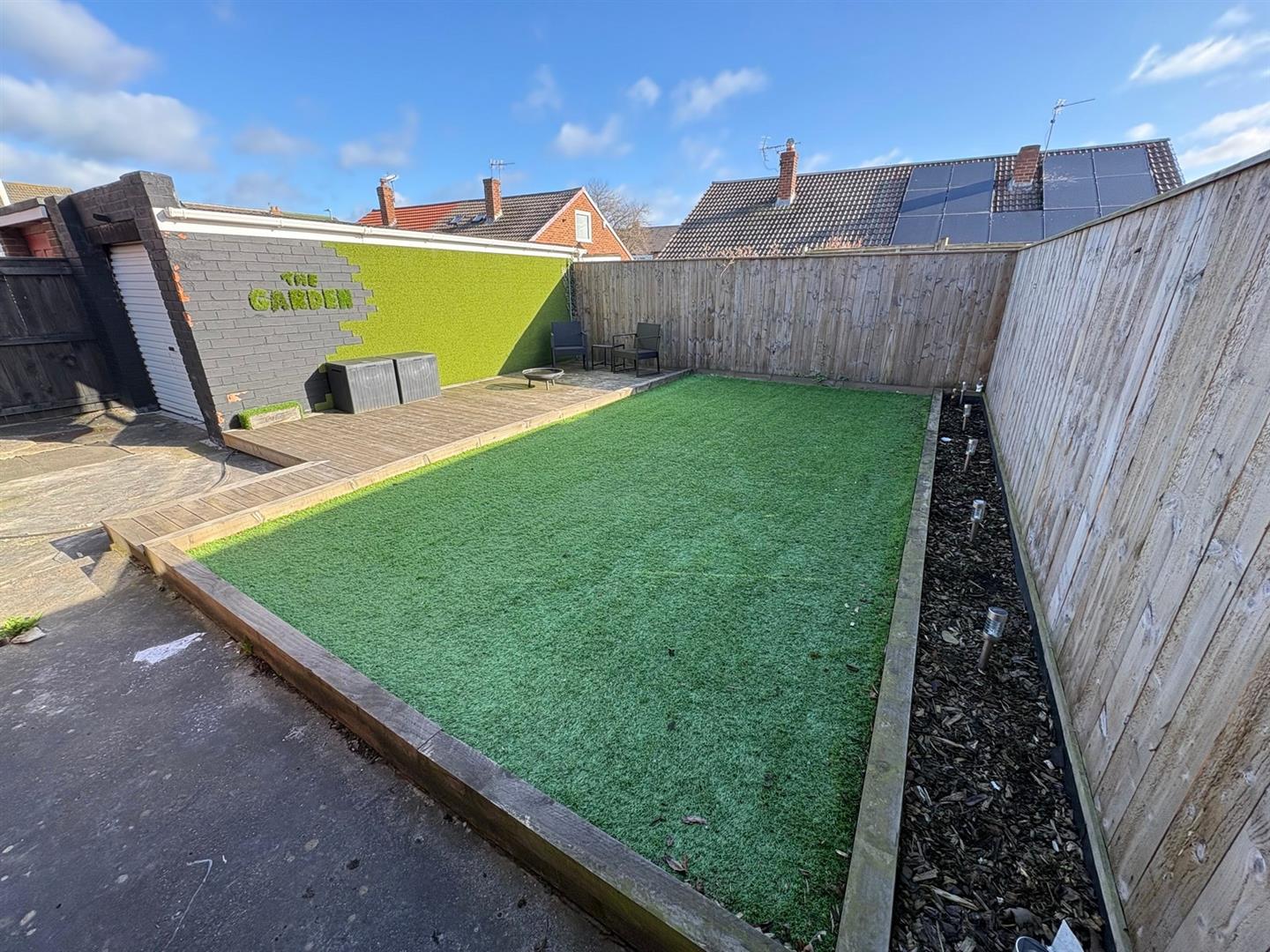 ExternallyThere is a lawned garden to the front of the property, a long driveway to the side with EV charging point, a detached garage with roller door, power & lighting and to the rear is a private low maintenance garden with artificial lawn and decked areas.