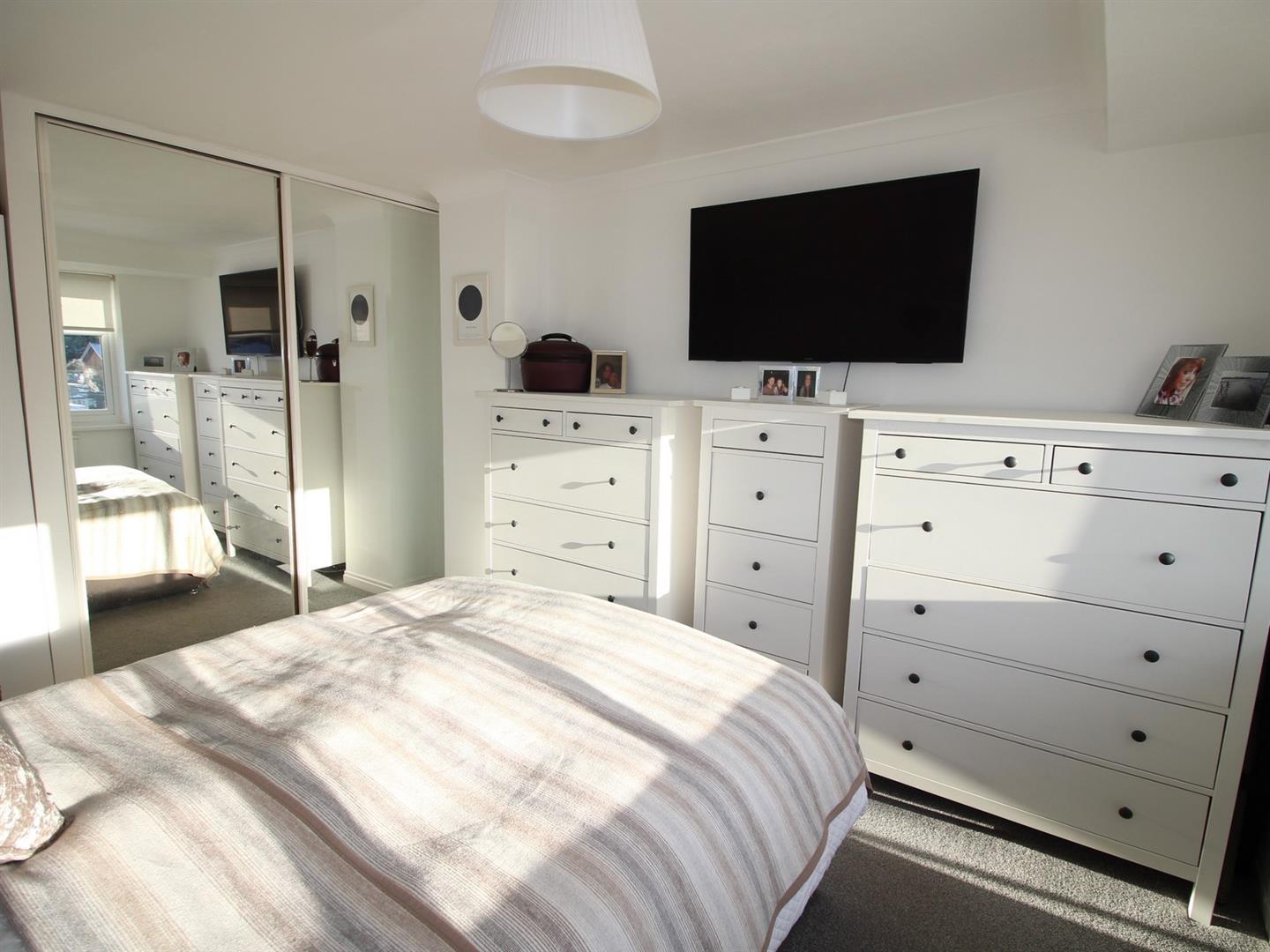 Front aspect UPVC double glazed window, fitted sliding mirrored wardrobes, coving and a radiator.