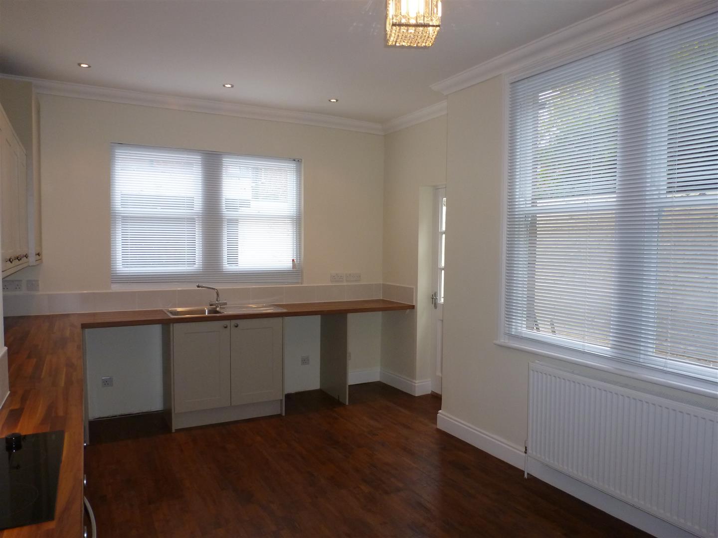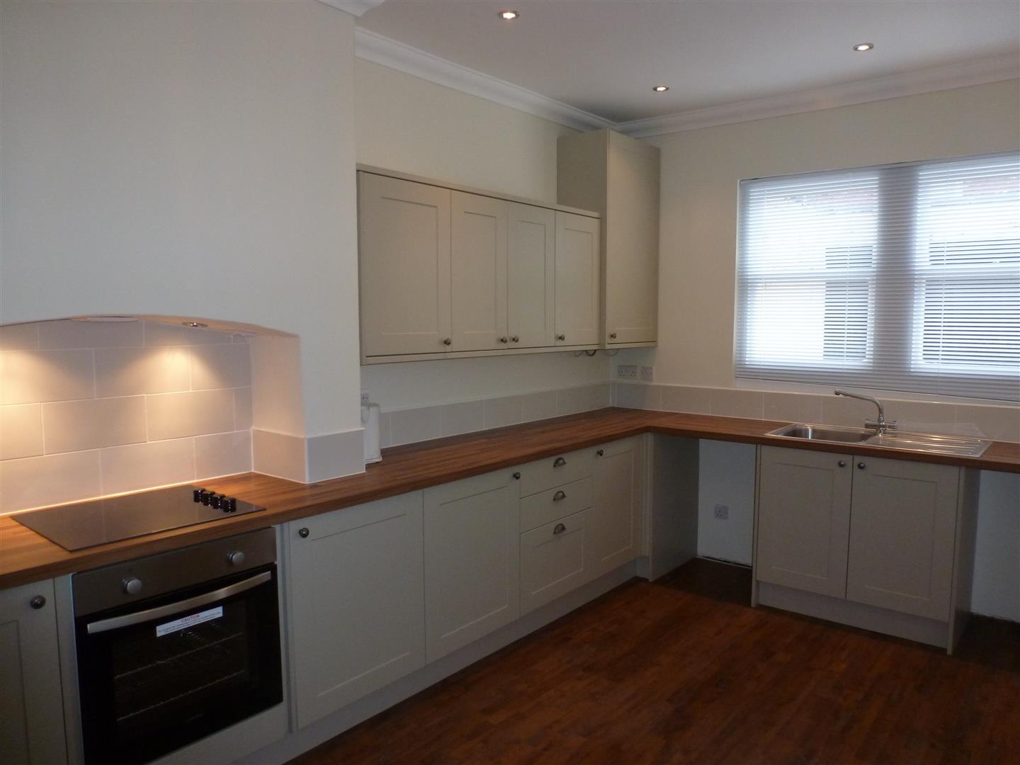 Side aspect double glazed sash window and door to yard. A range of base & wall units with wood effect worktops incorporating stainless steel sink with mixer tap. Integrated electric hob with oven below, space for washer and fridge/freezer, solid wood flooring and a radiator.