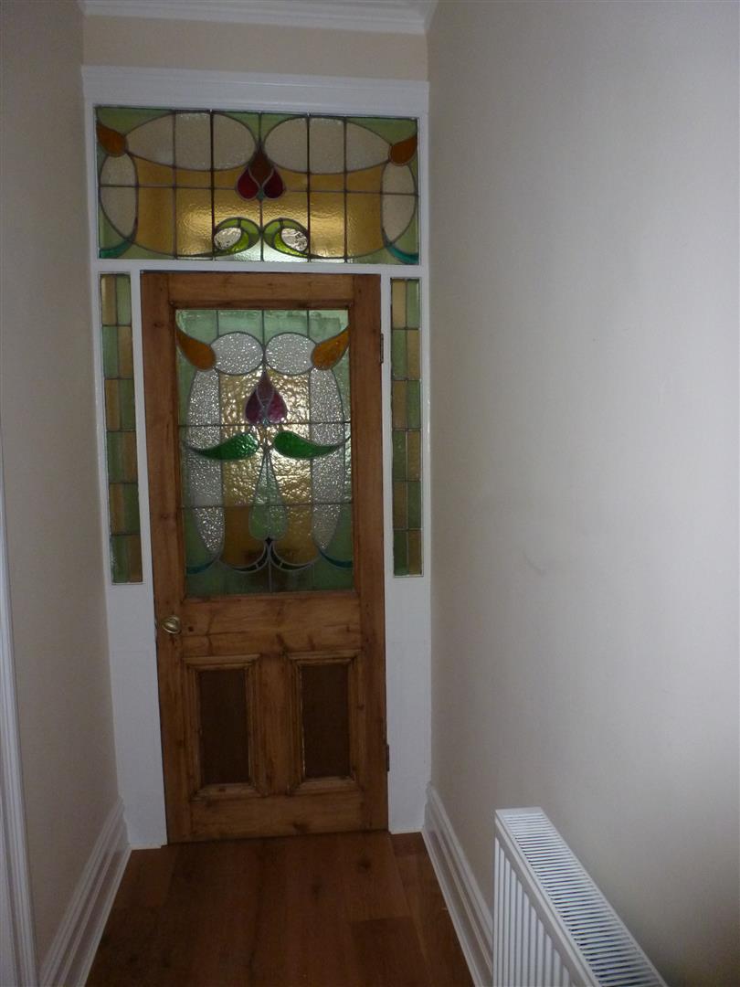 ENTRANCEWooden solid door and inner door with stained glass cut feature light leading to: