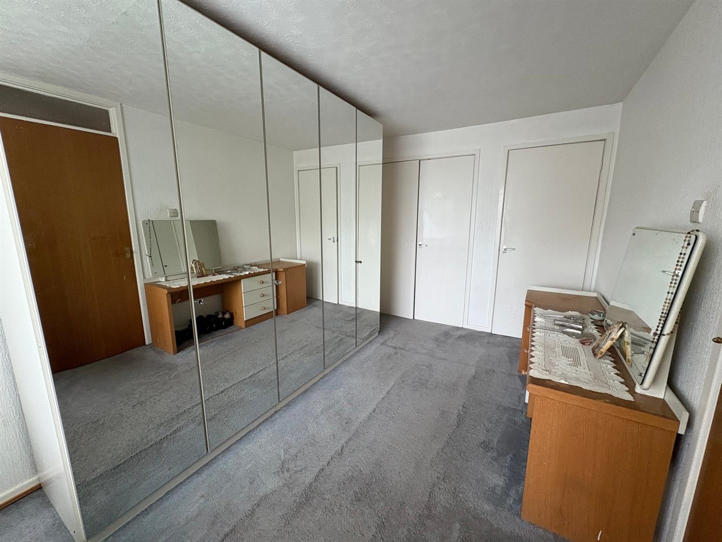 Front aspect UPVC double glazed window, built-in wardrobe & cupboard, and a radiator.