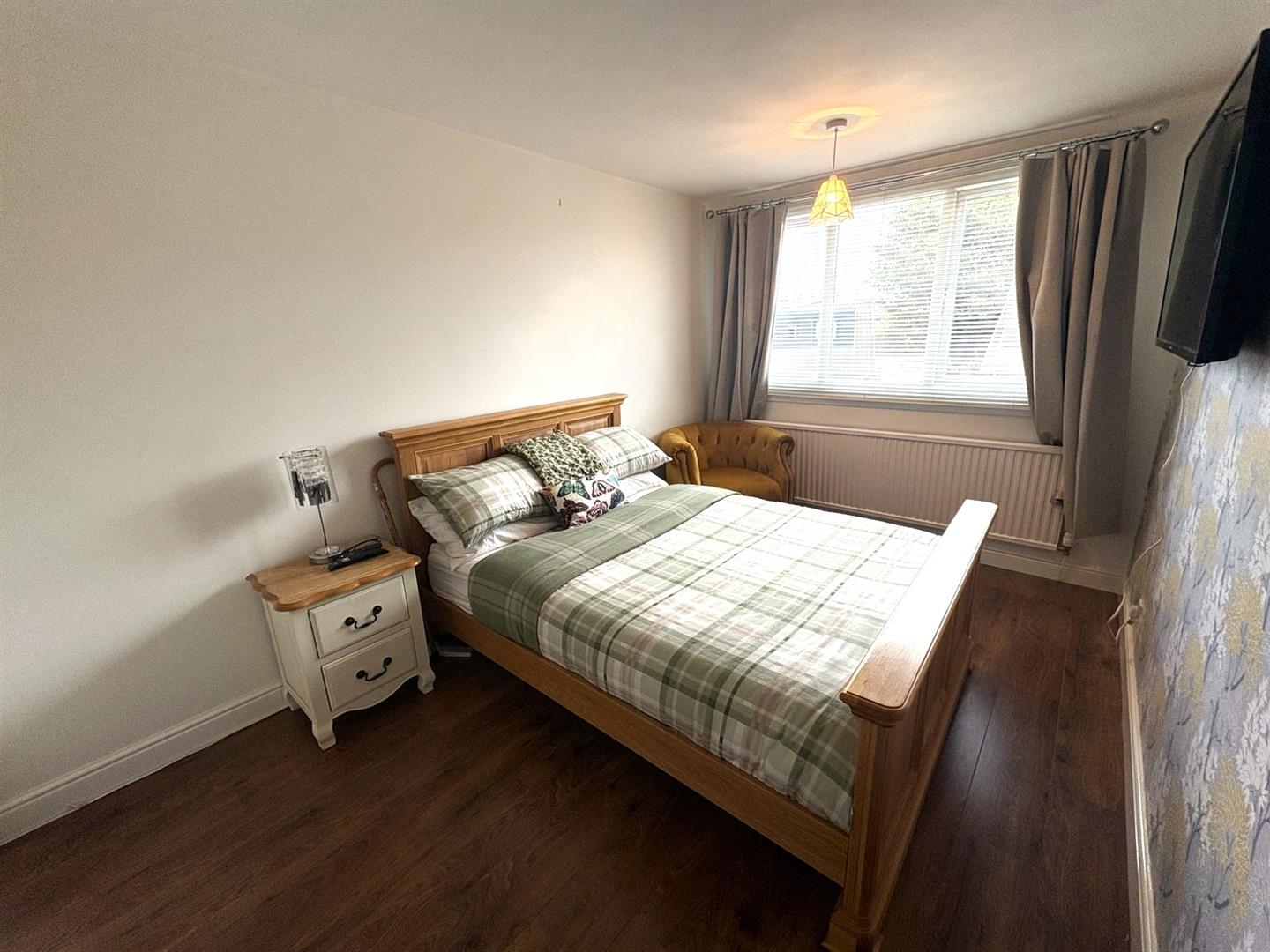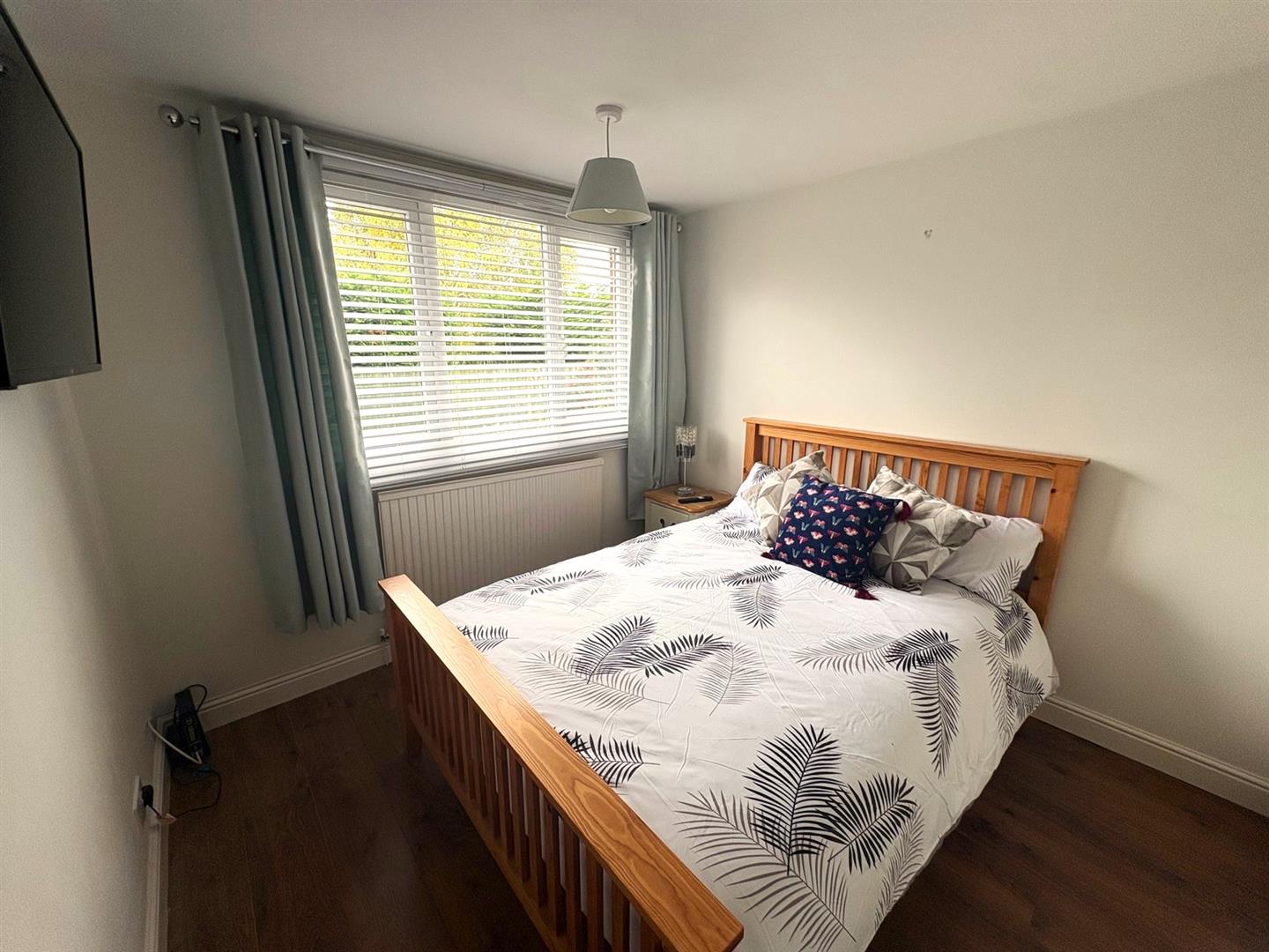 Front aspect UPVC double glazed window, built-in wardrobes & cupboards, laminate flooring and a radiator.
