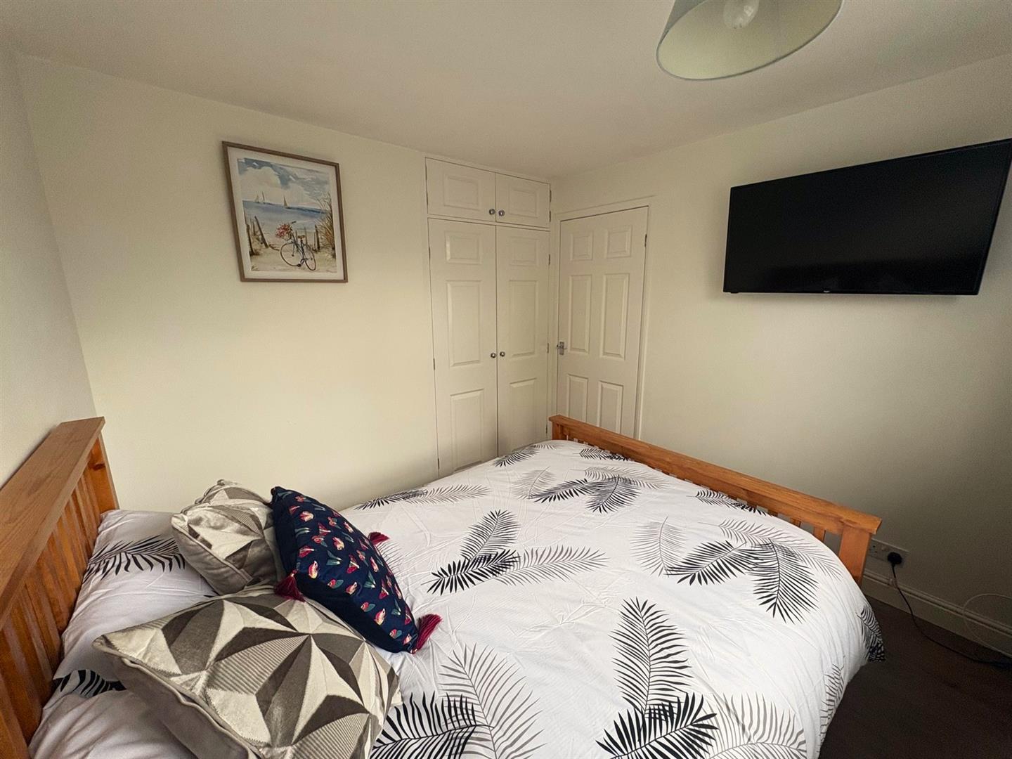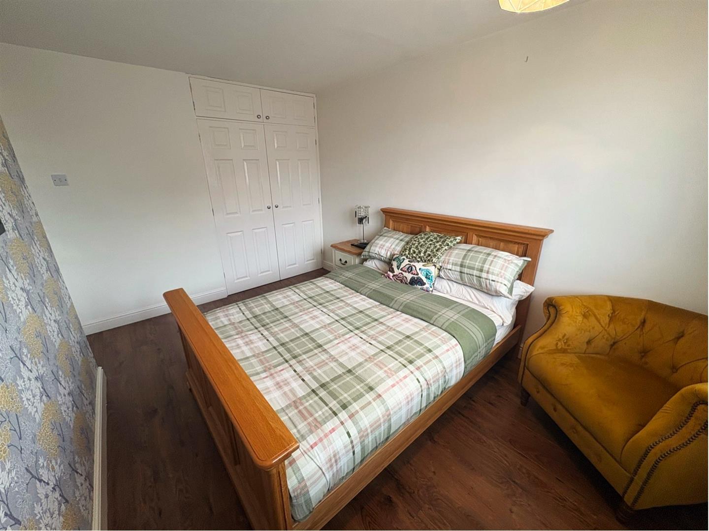 Rear aspect UPVC double glazed window, built-in wardrobes & cupboards, laminate flooring and a radiator.