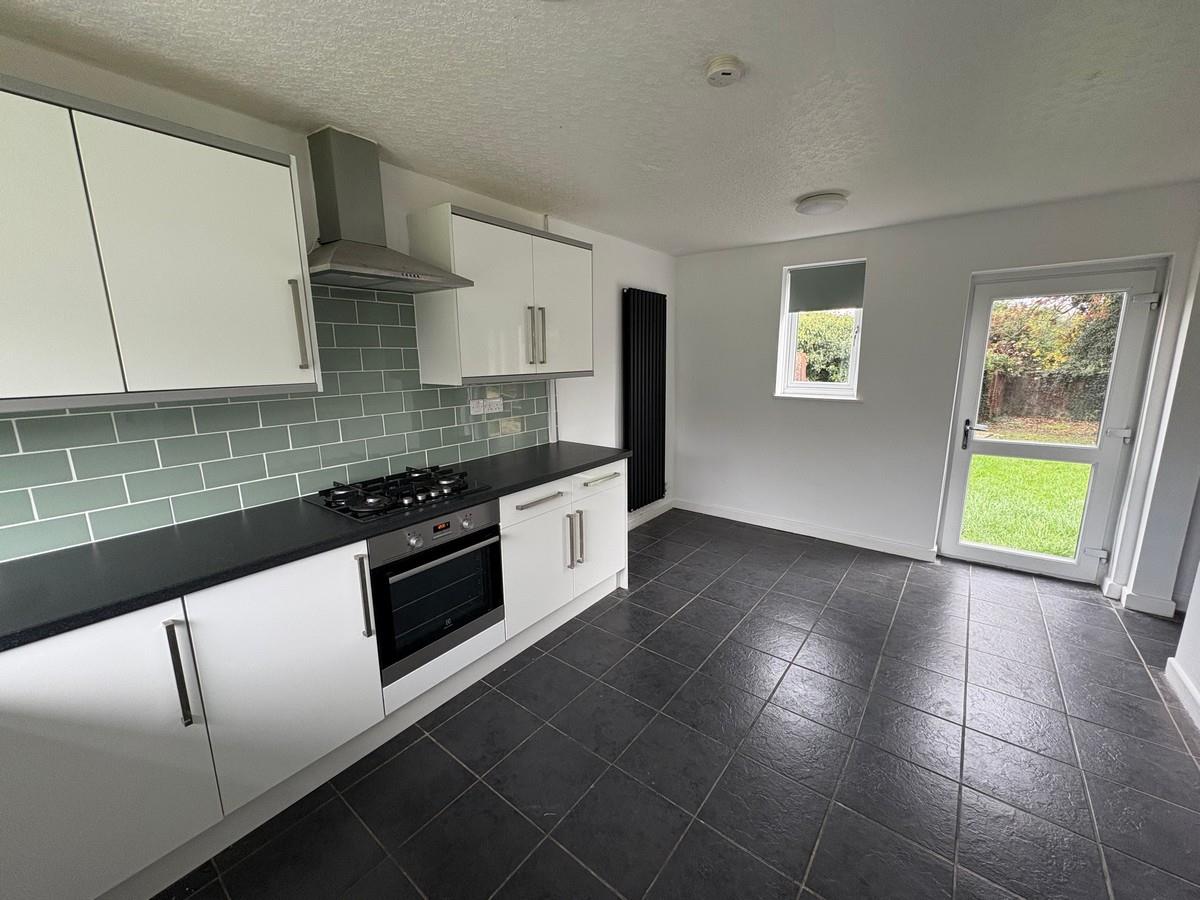 Front & rear aspect UPVC double glazed windows and a rear aspect UPVC door to the garden. Base & wall units with rolled worksurfaces and tiled splashbacks incorporating a stainless steel sink & mixer tap and a gas hob, with oven below & extractor hood. Tiled floor, large under stair storage cupboard and a modern column radiator.